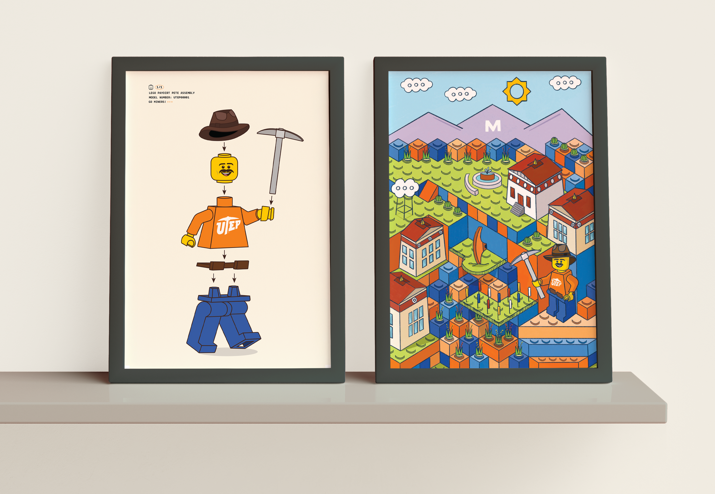 Brought UTEP’s mascot to life in LEGO form! Created and illustrated a LEGO Paydirt Pete kit that includes packaging, posters, and stickers for The University of Texas at El Paso’s Department of Enrollment Marketing. This welcome gift was given to new, committed students at a a major enrollment event.